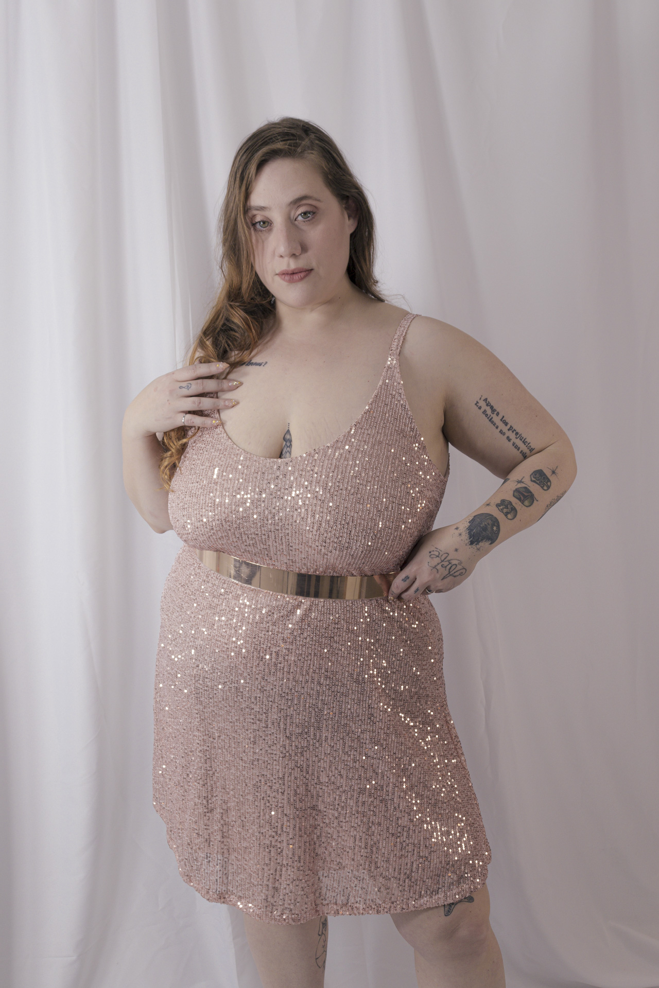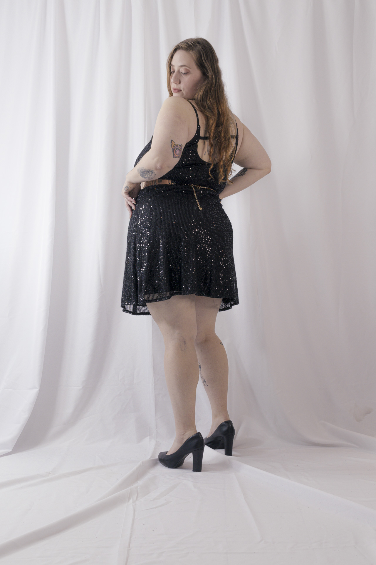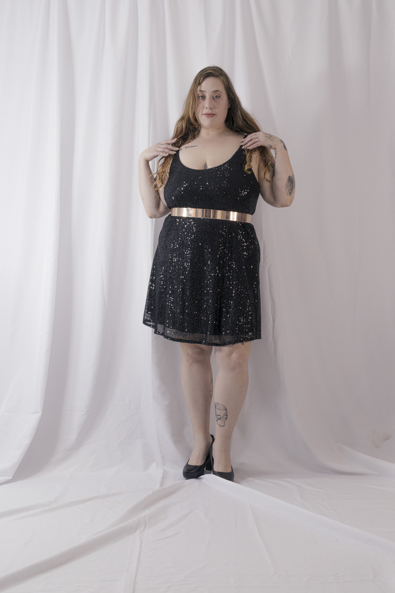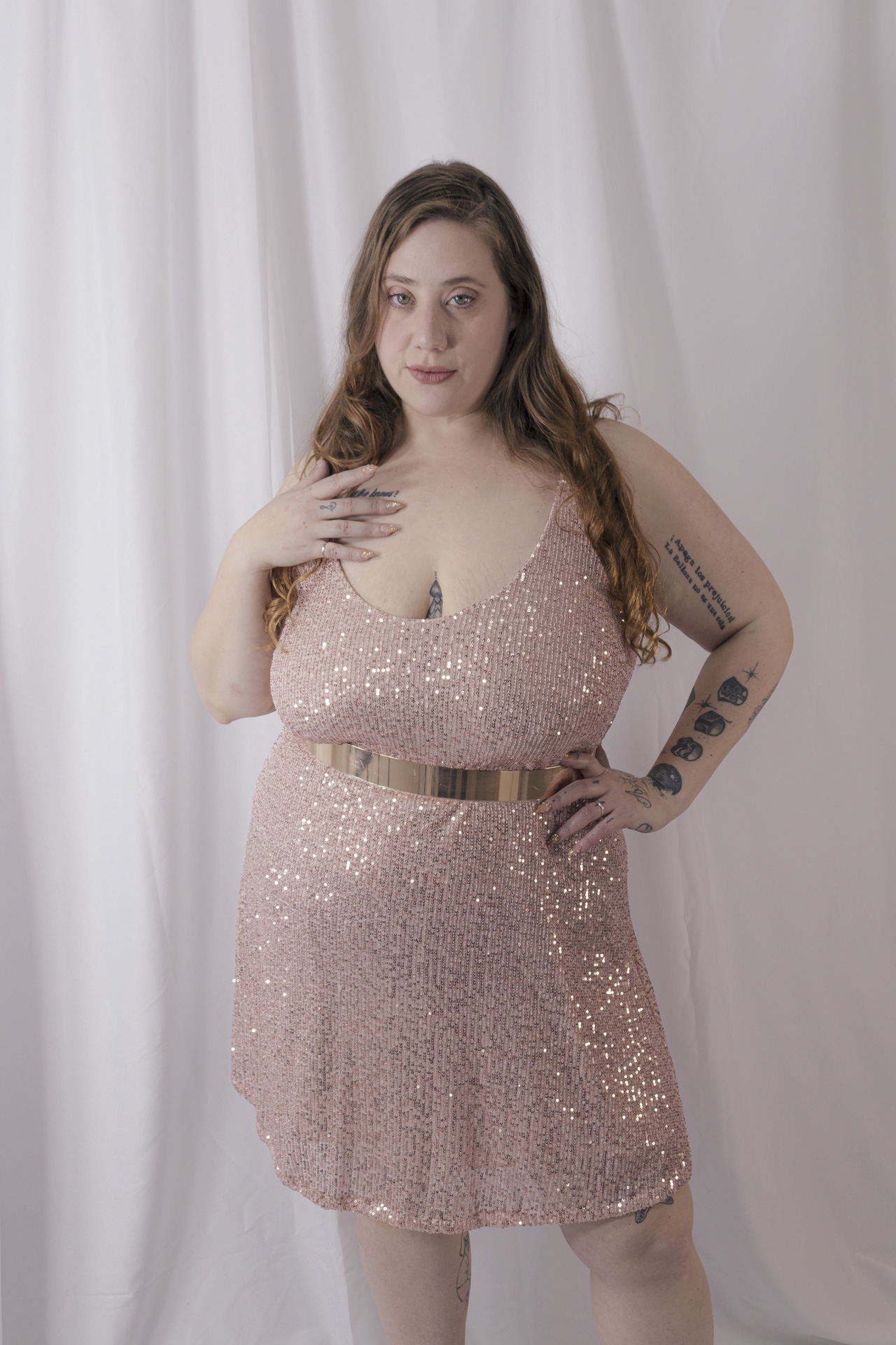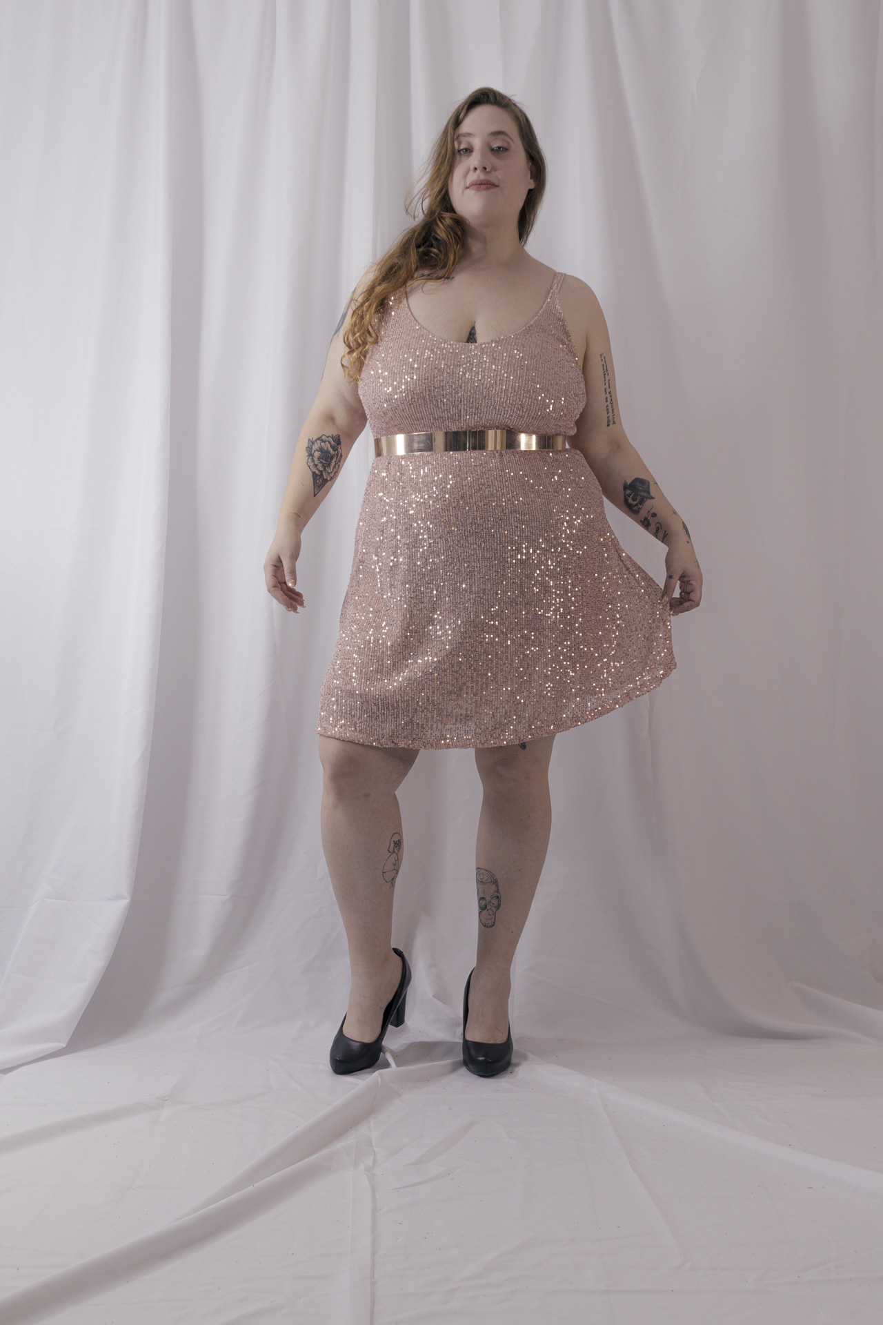 Vestido lentejuelas con Forreria, corte A suelto y cómodo. Talle 3 y 4