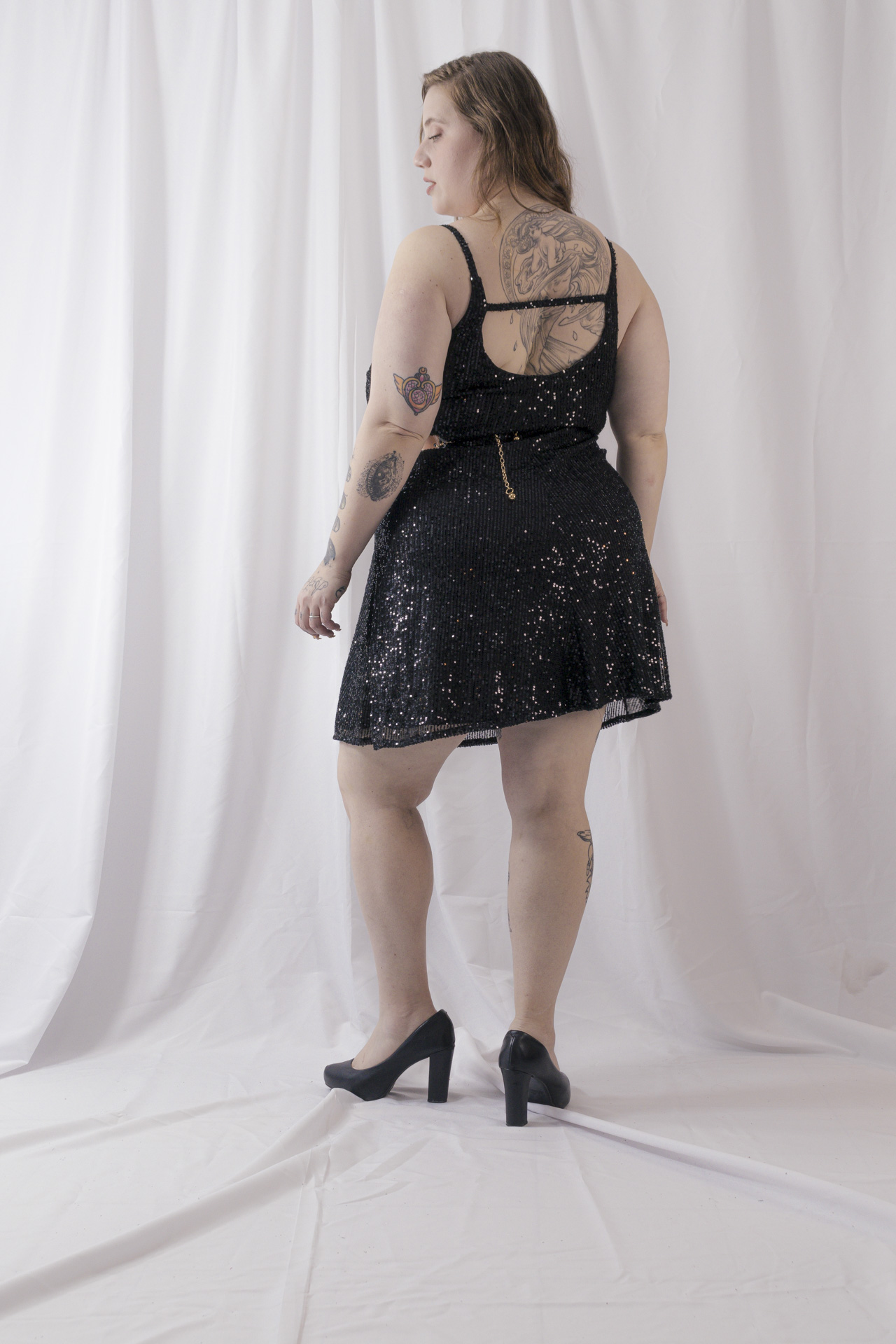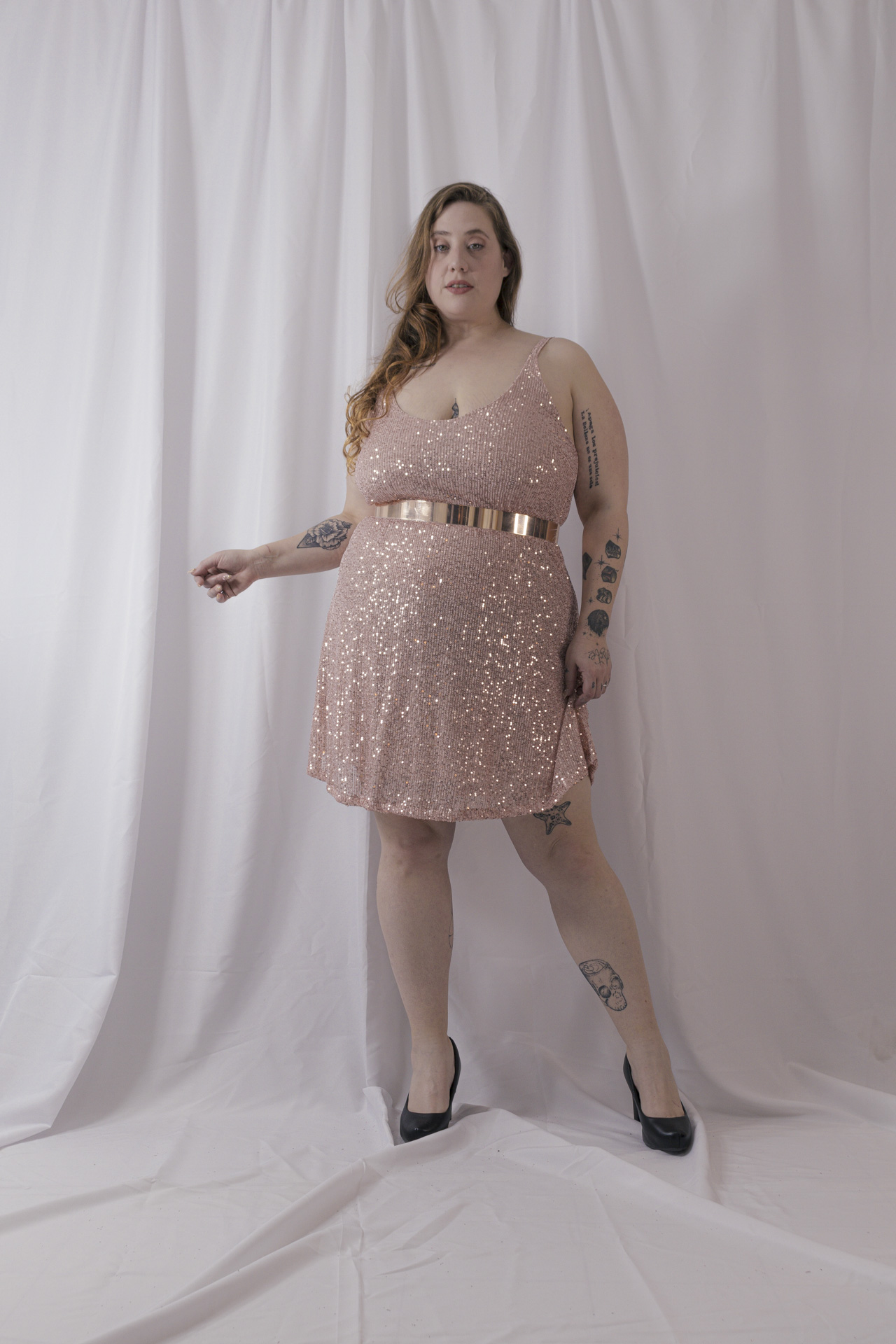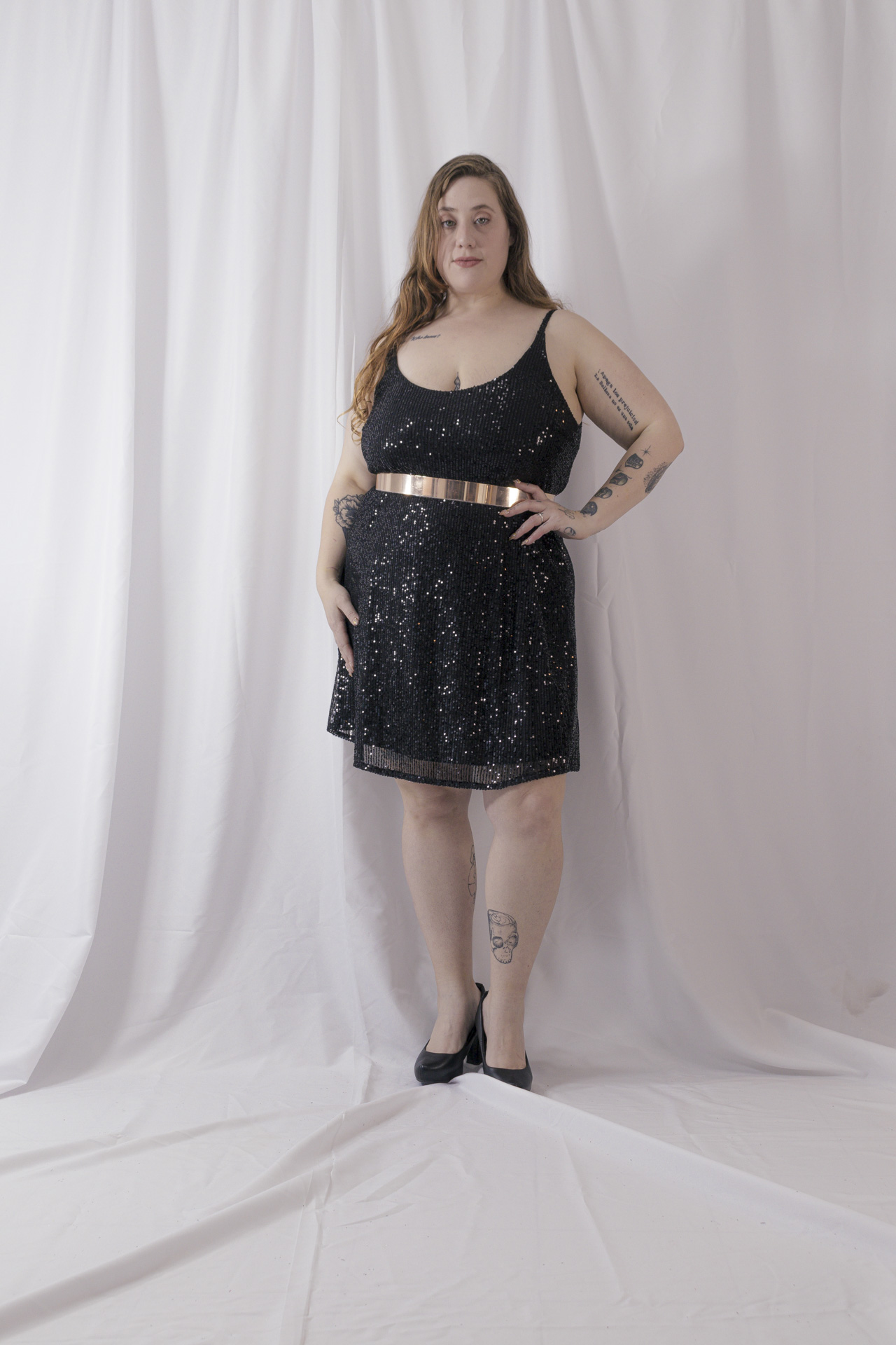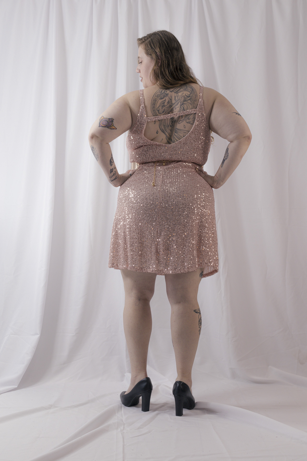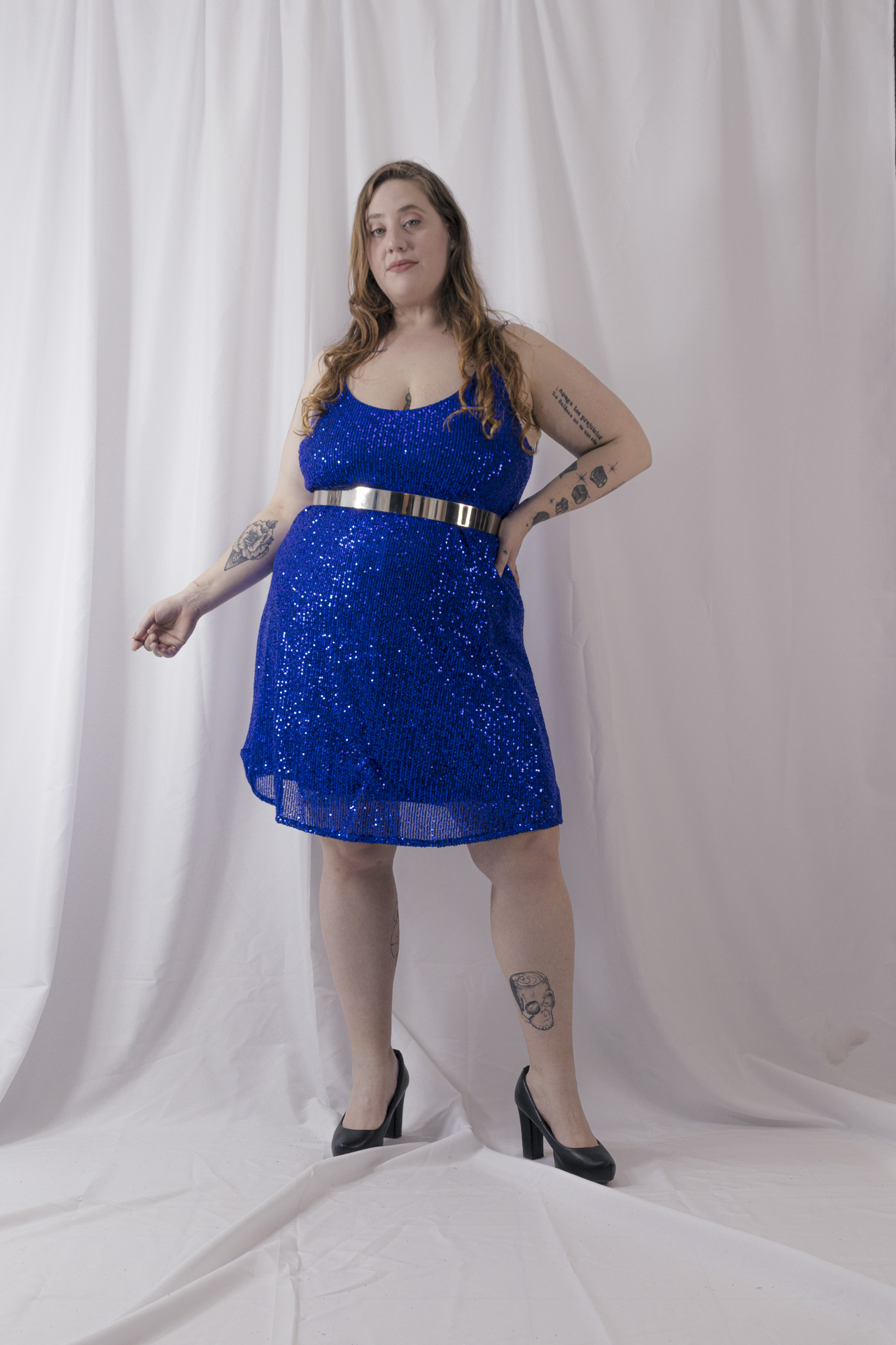 Vestido lentejuelas con Forreria, corte A suelto y cómodo. Talle 3 y 4