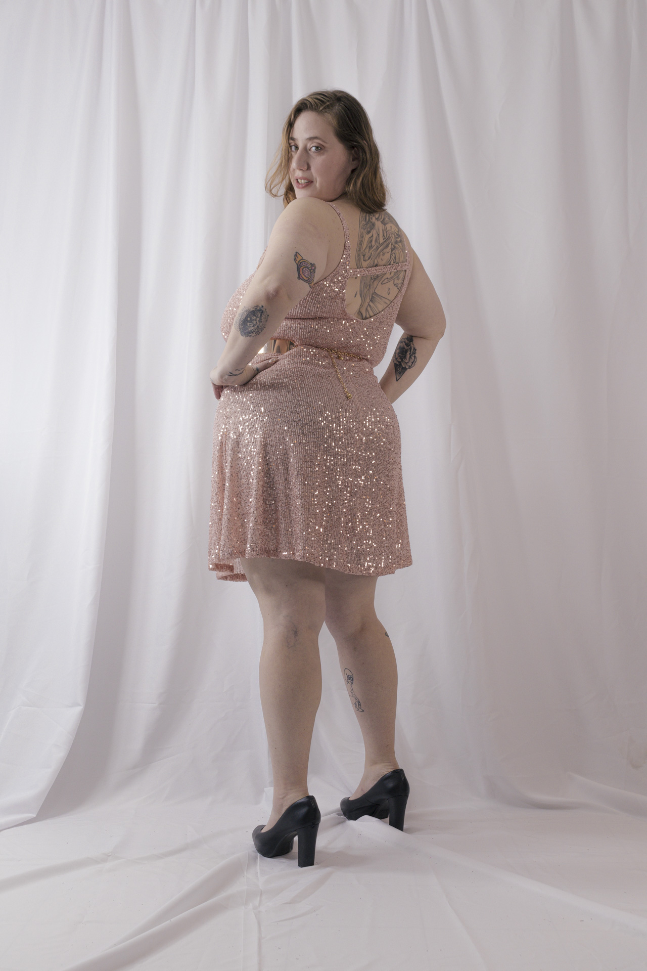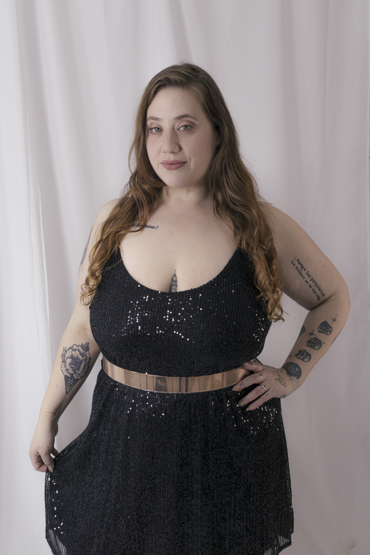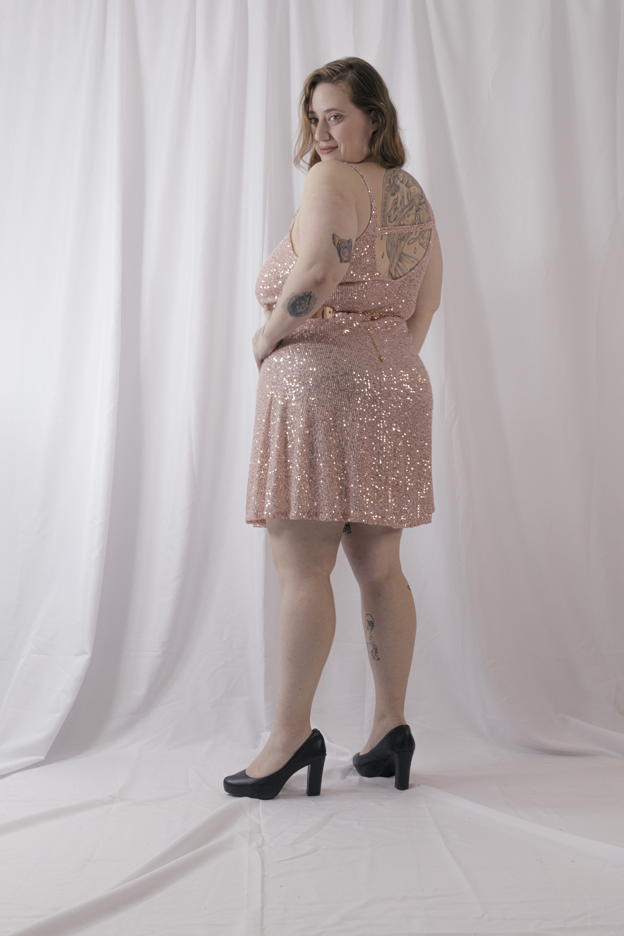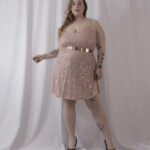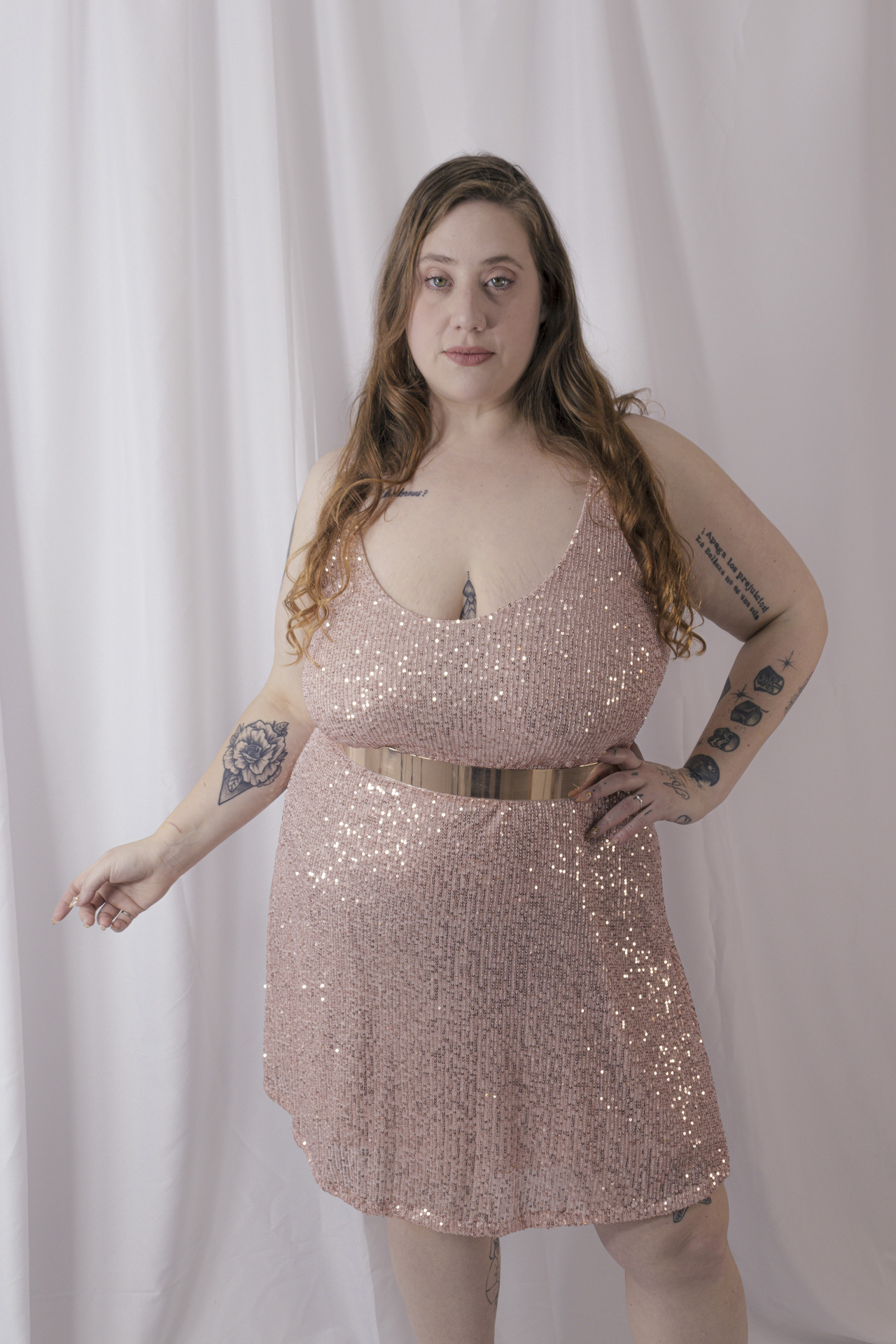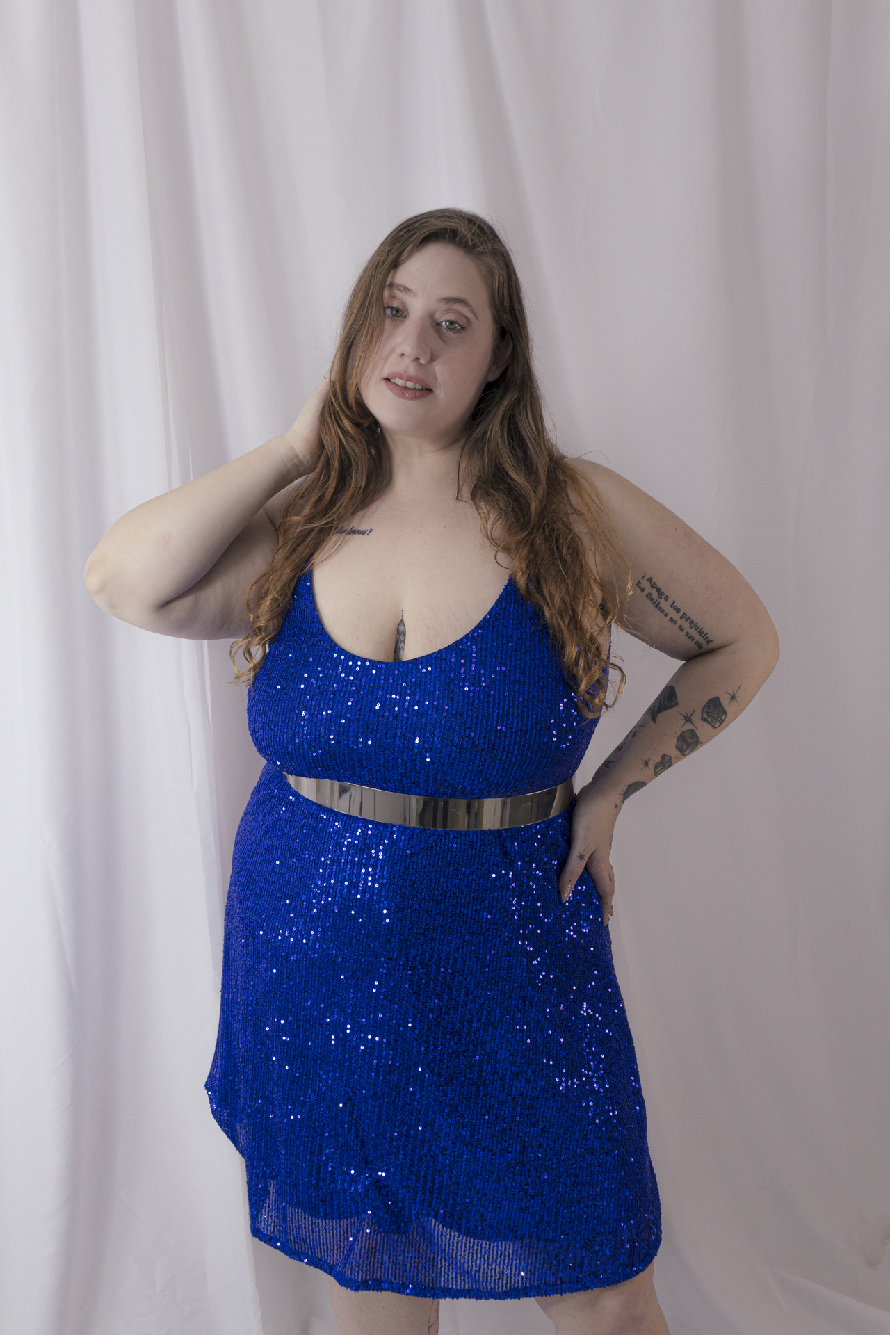 Vestido lentejuelas con Forreria, corte A suelto y cómodo. Talle 3 y 4