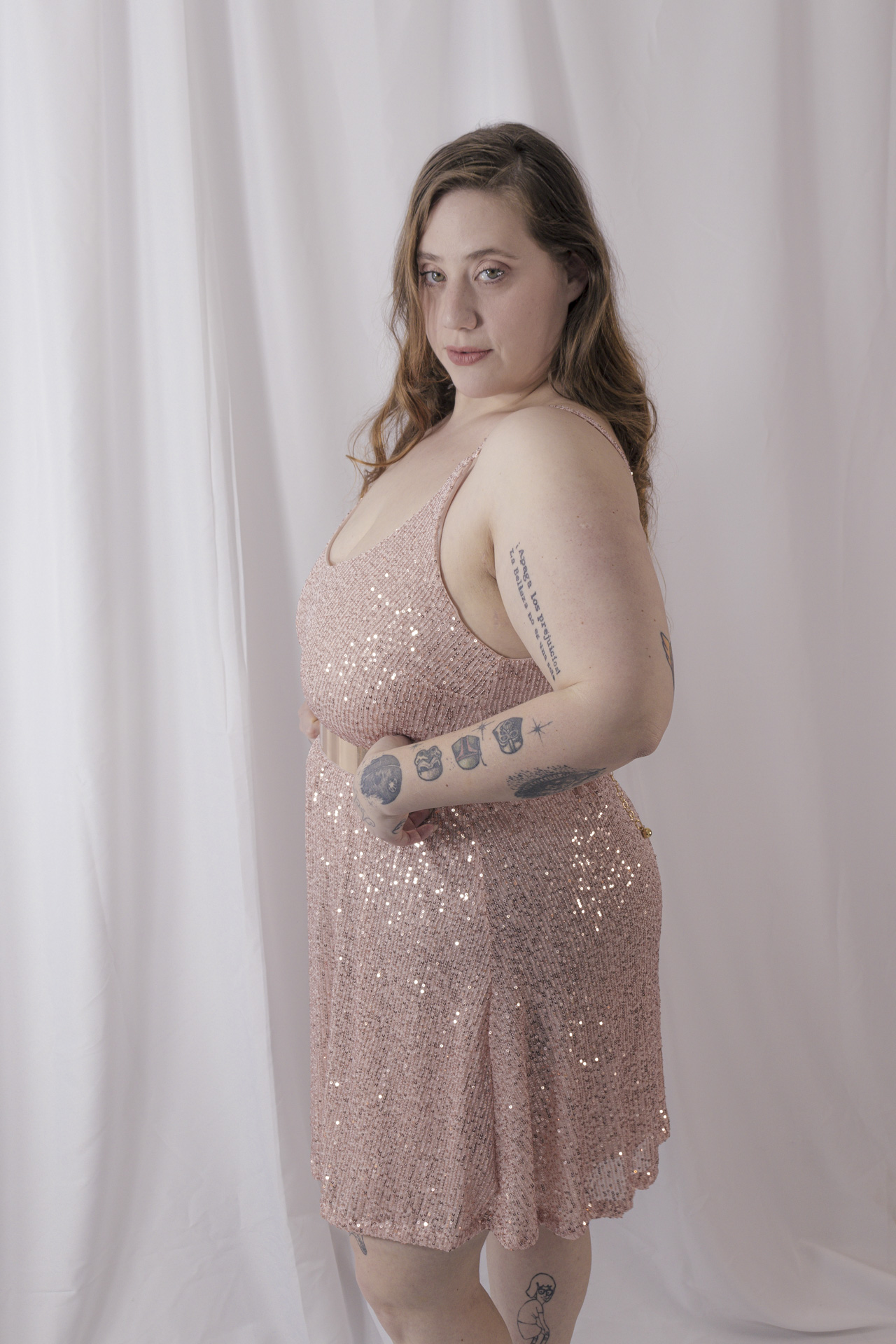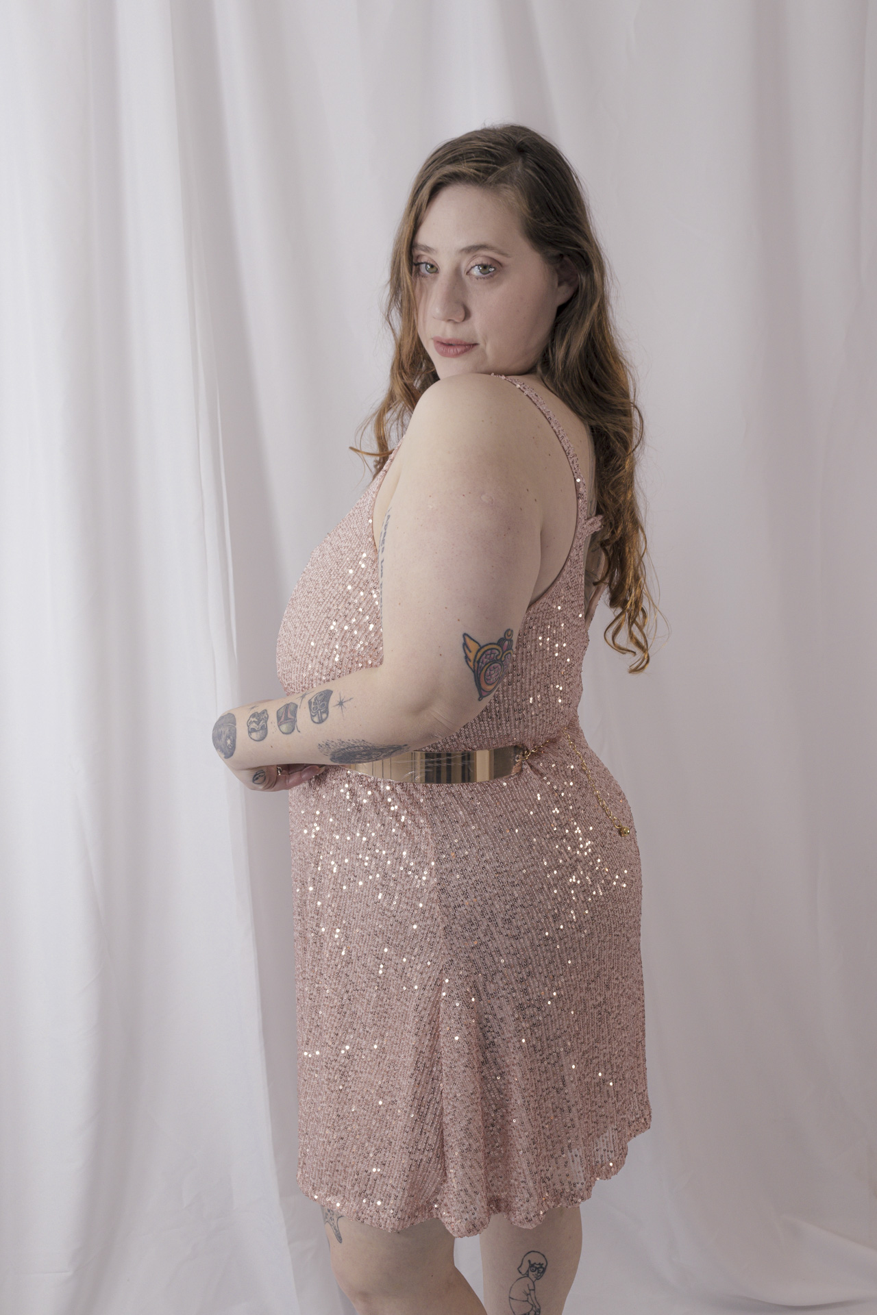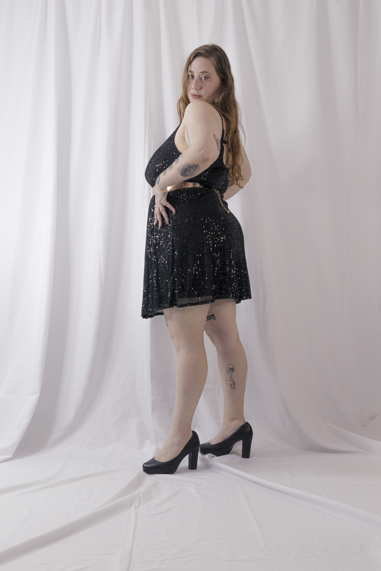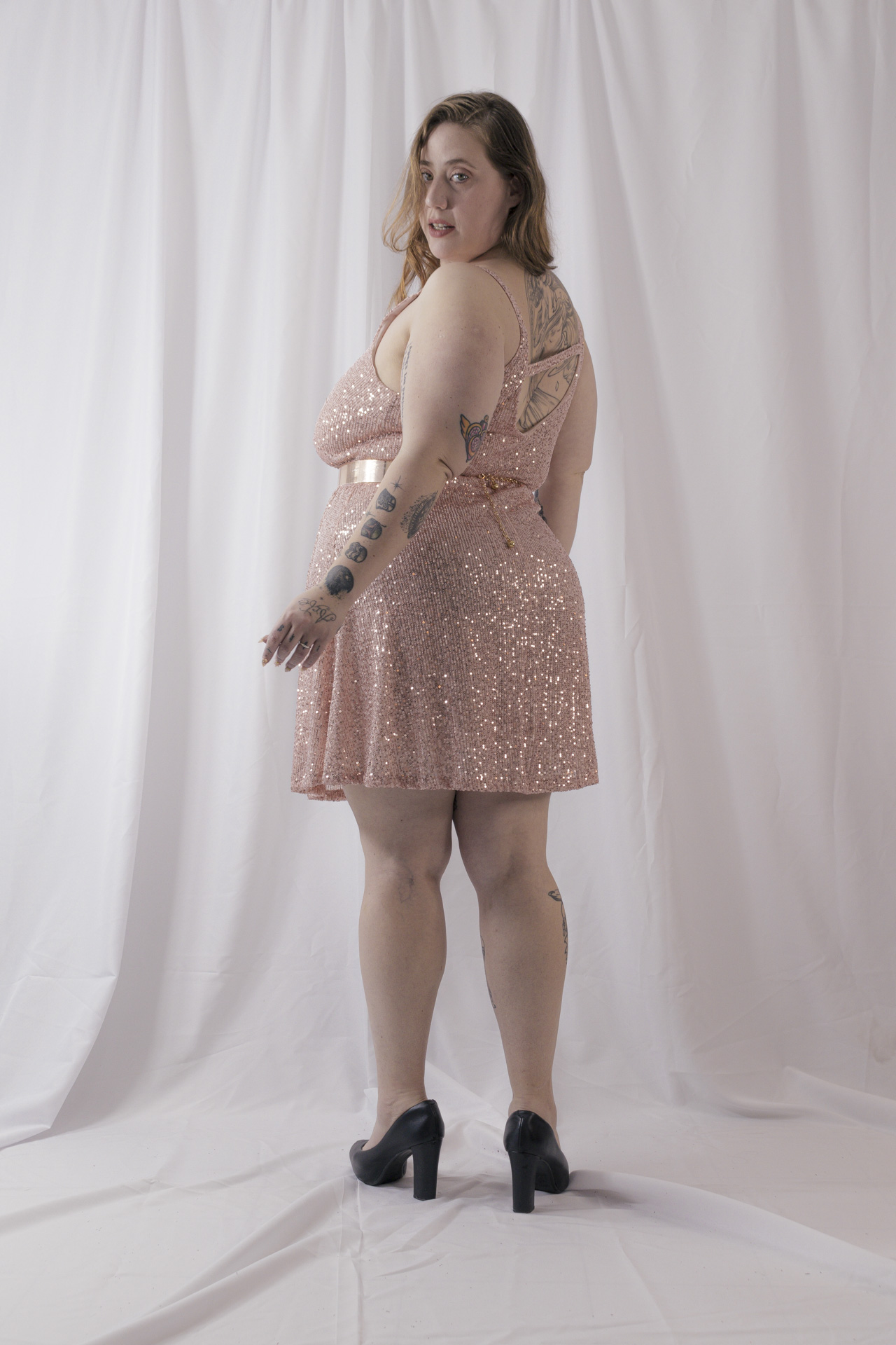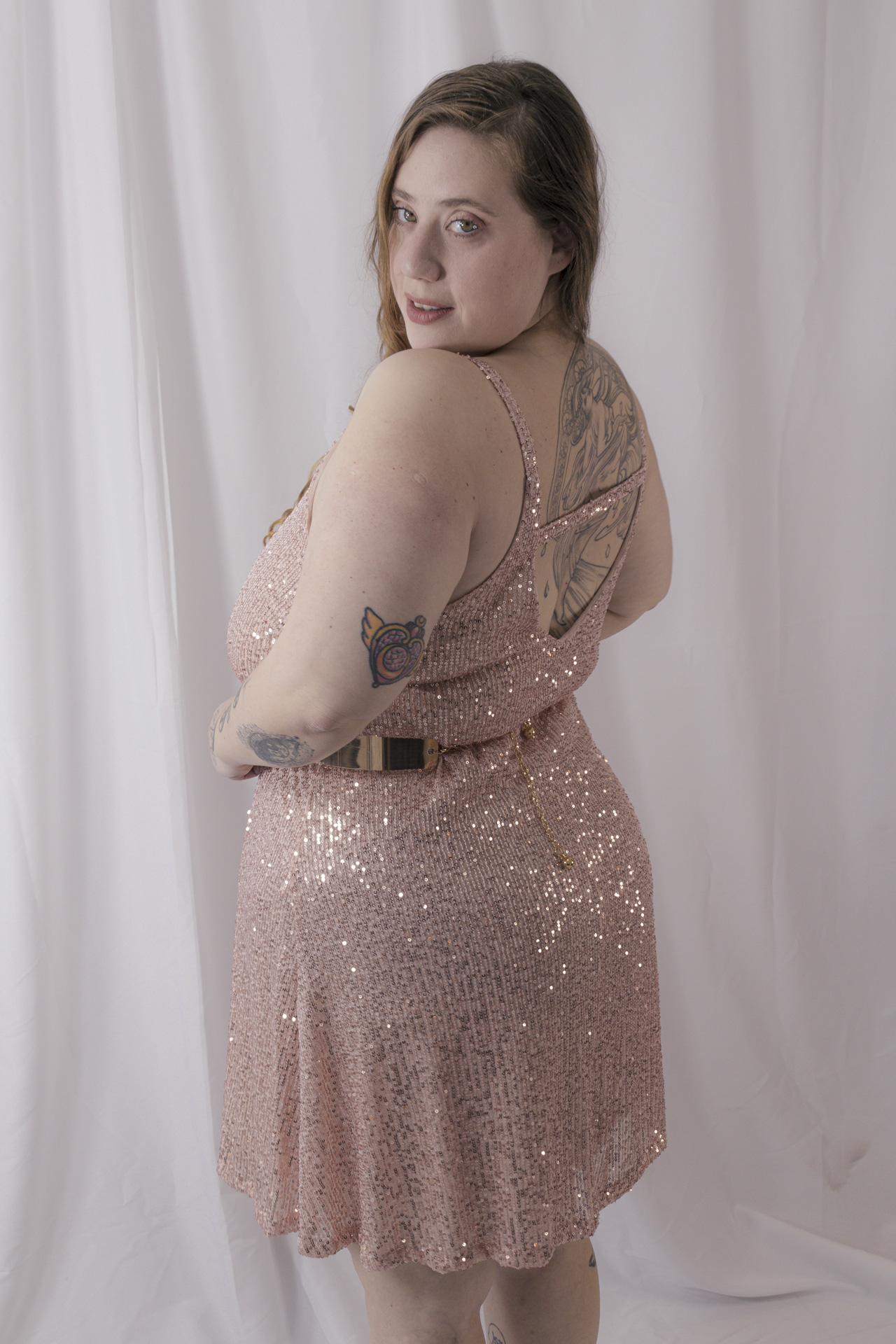 Vestido lentejuelas con Forreria, corte A suelto y cómodo. Talle 3 y 4