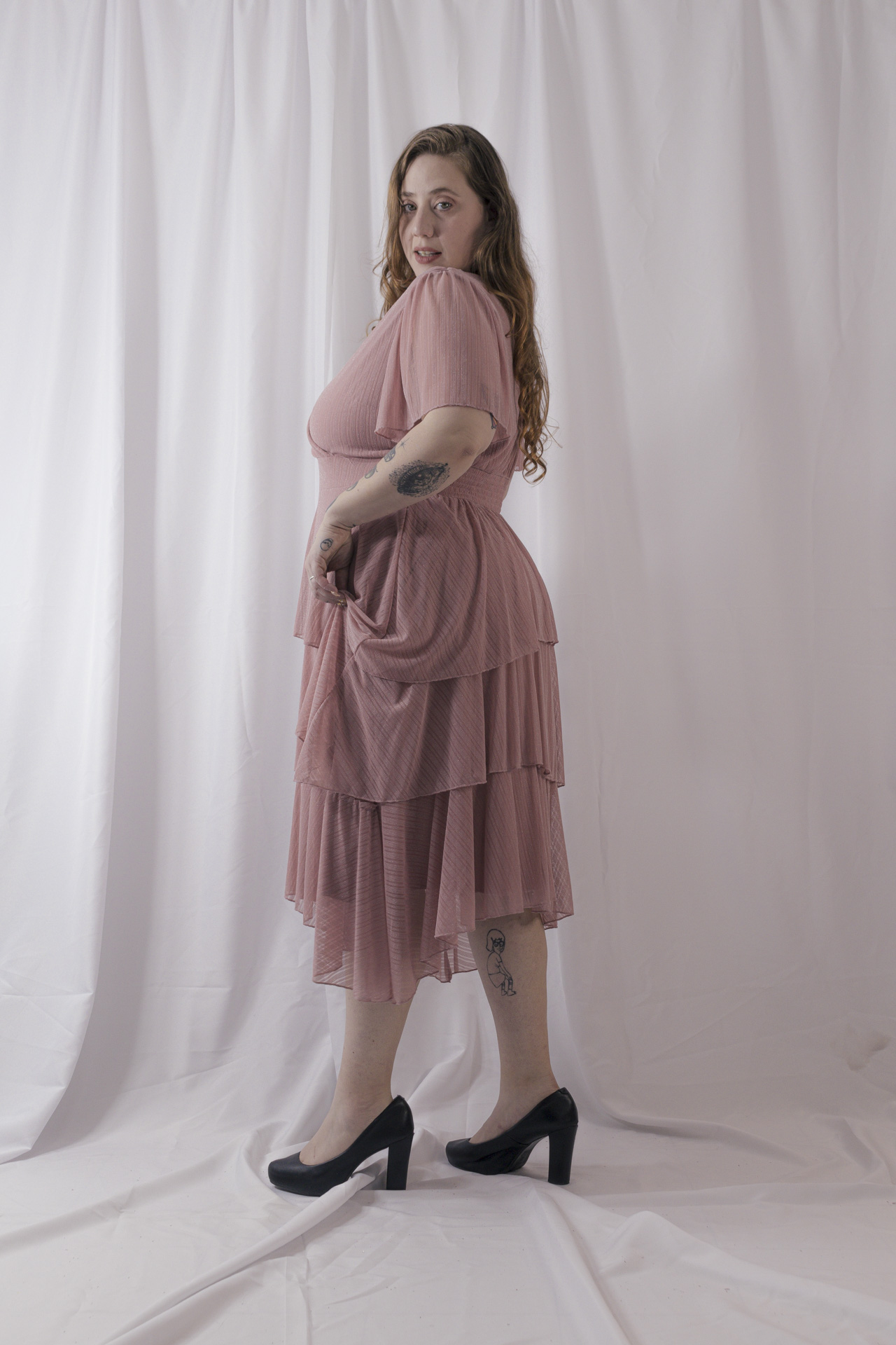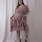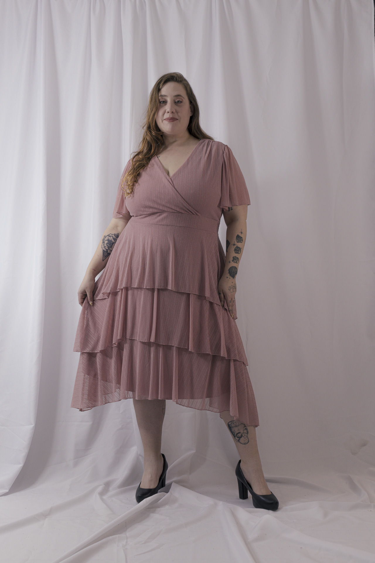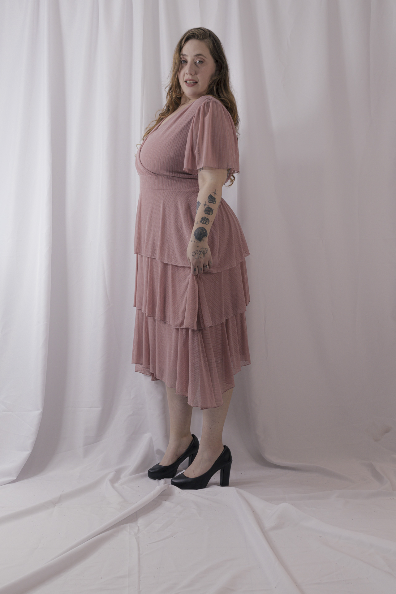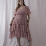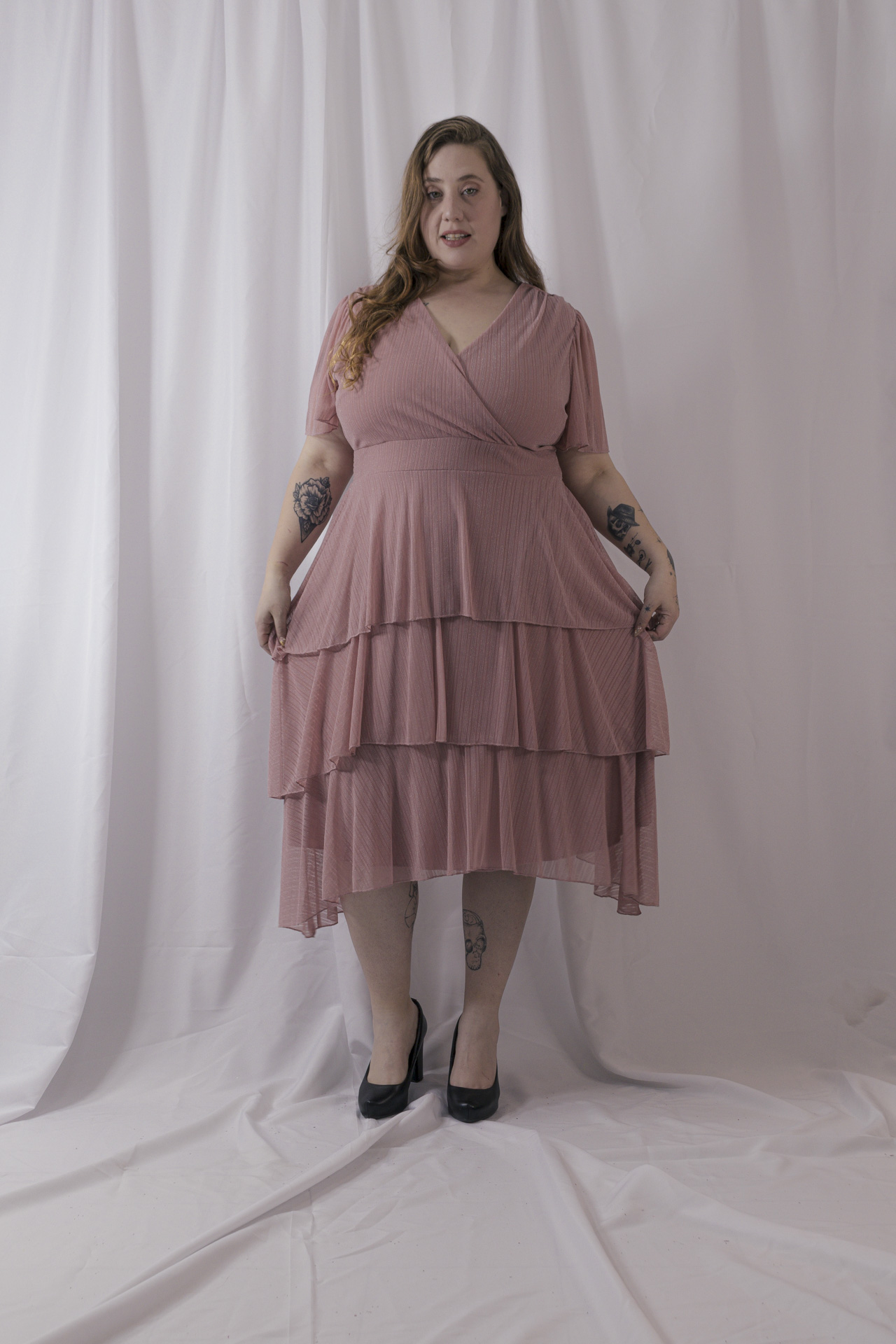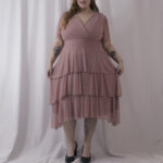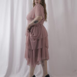 Vestido de volados, ÚNICO, vestido de tul en rosa viejo con volados y súper caída, elegante y cómodo da hasta el talle 4/5