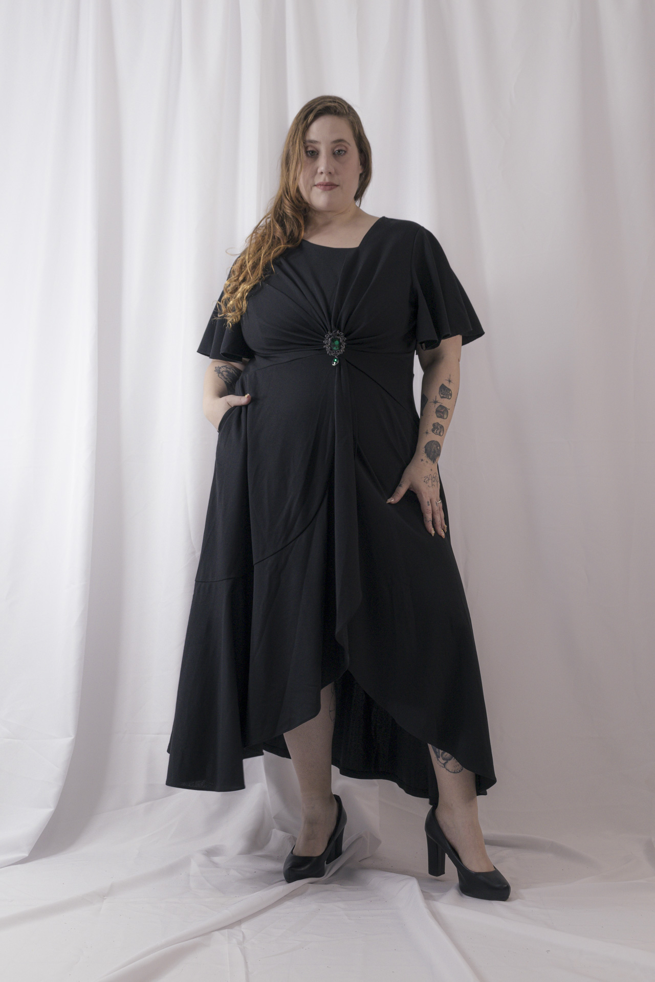 Vestido broche, ÚNICO, hermoso vestido de creppe elegante y cómodo, da hasta talle 5.
