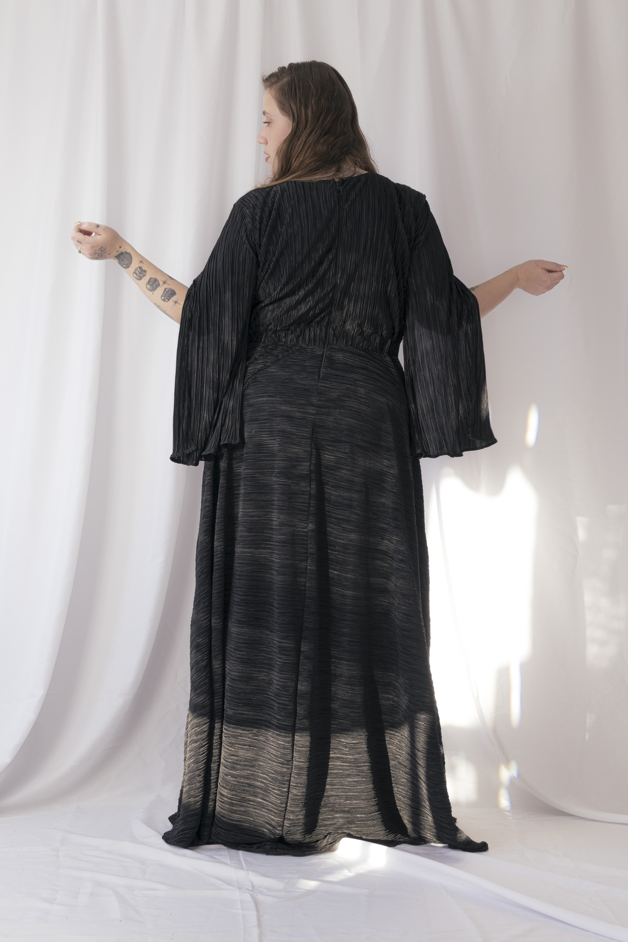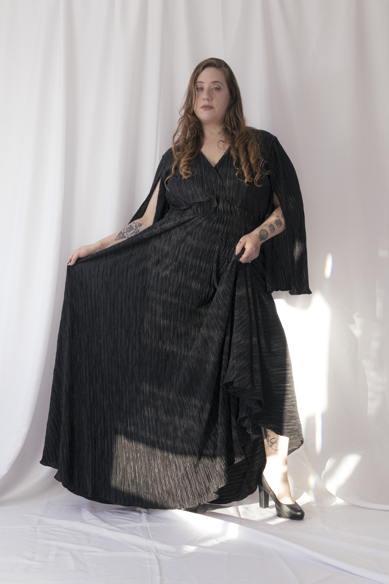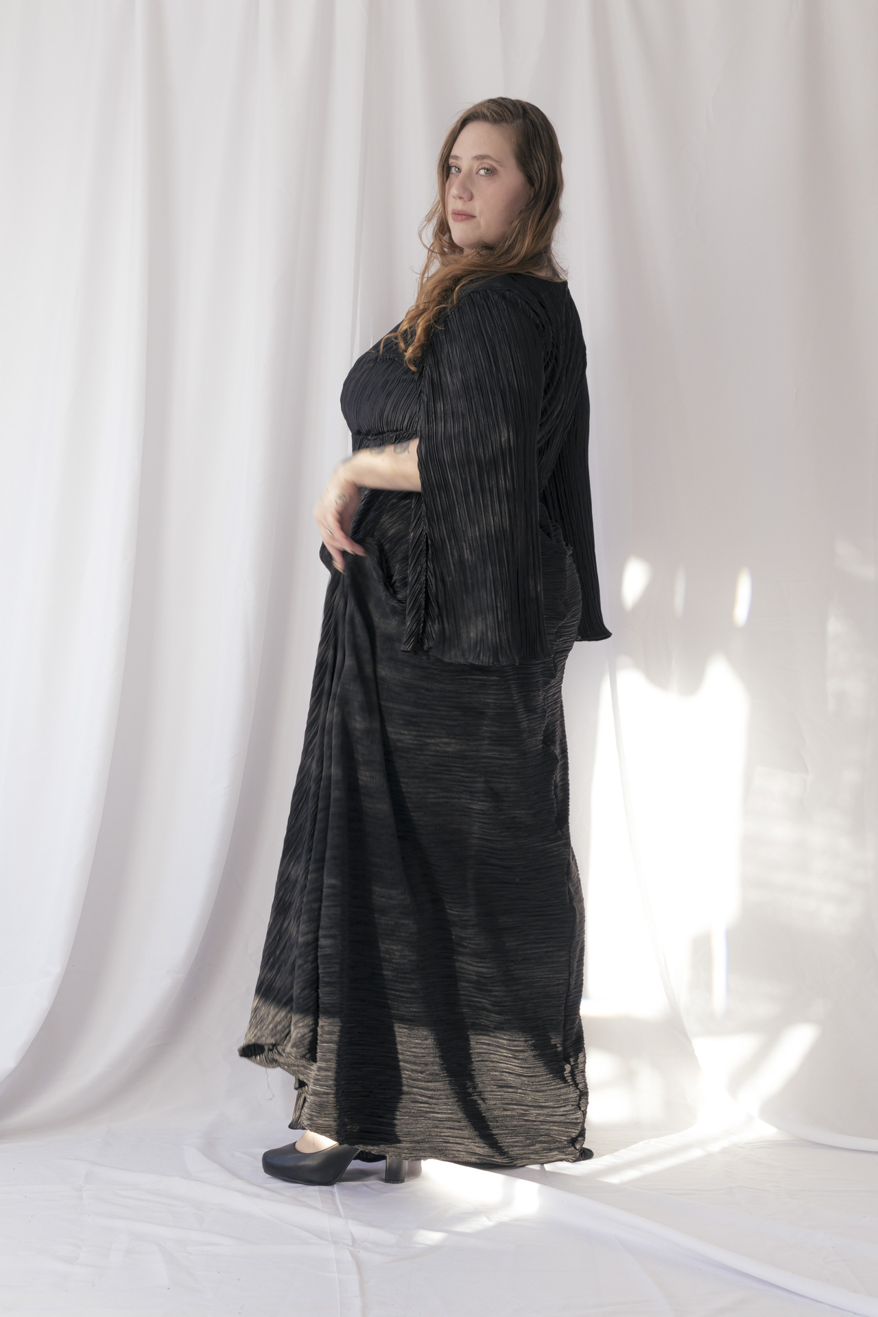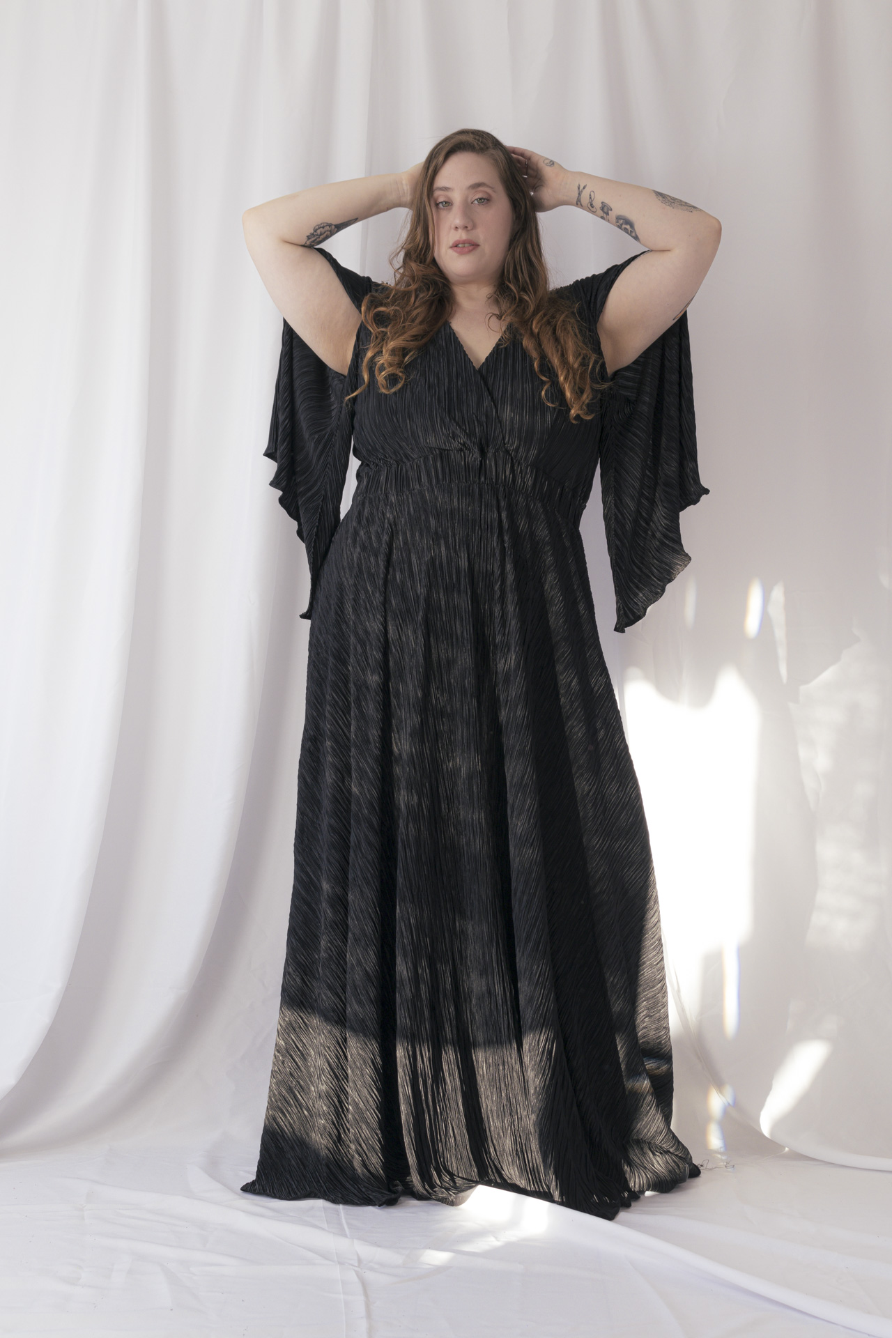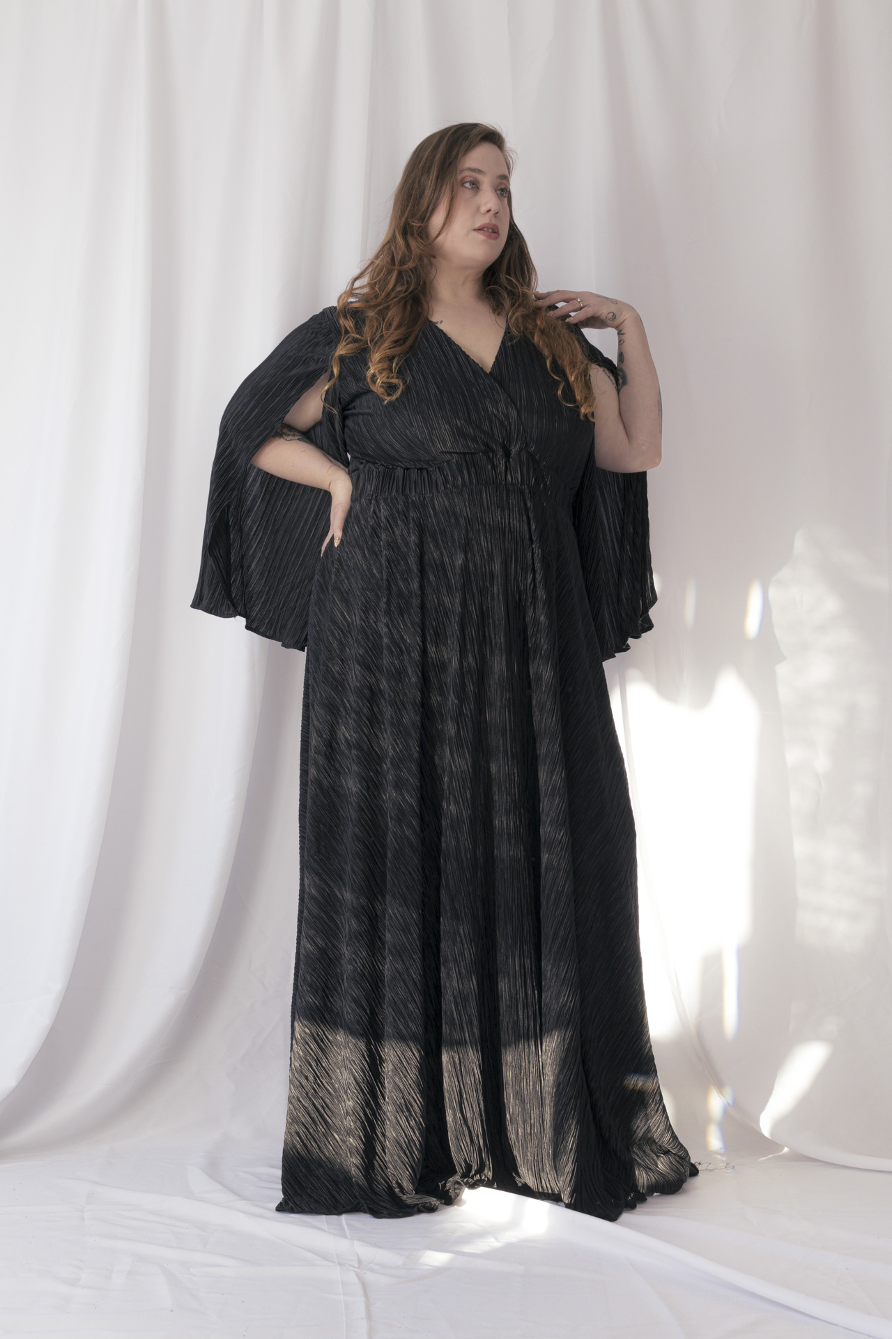 Vestido de tela plisado súper elástizado cómodo y elegante. Viene del talle 4 al 6. Ideal para usar con corpiño y faja ya que no marca nada. Viene en colores negro, bordo y azul noche